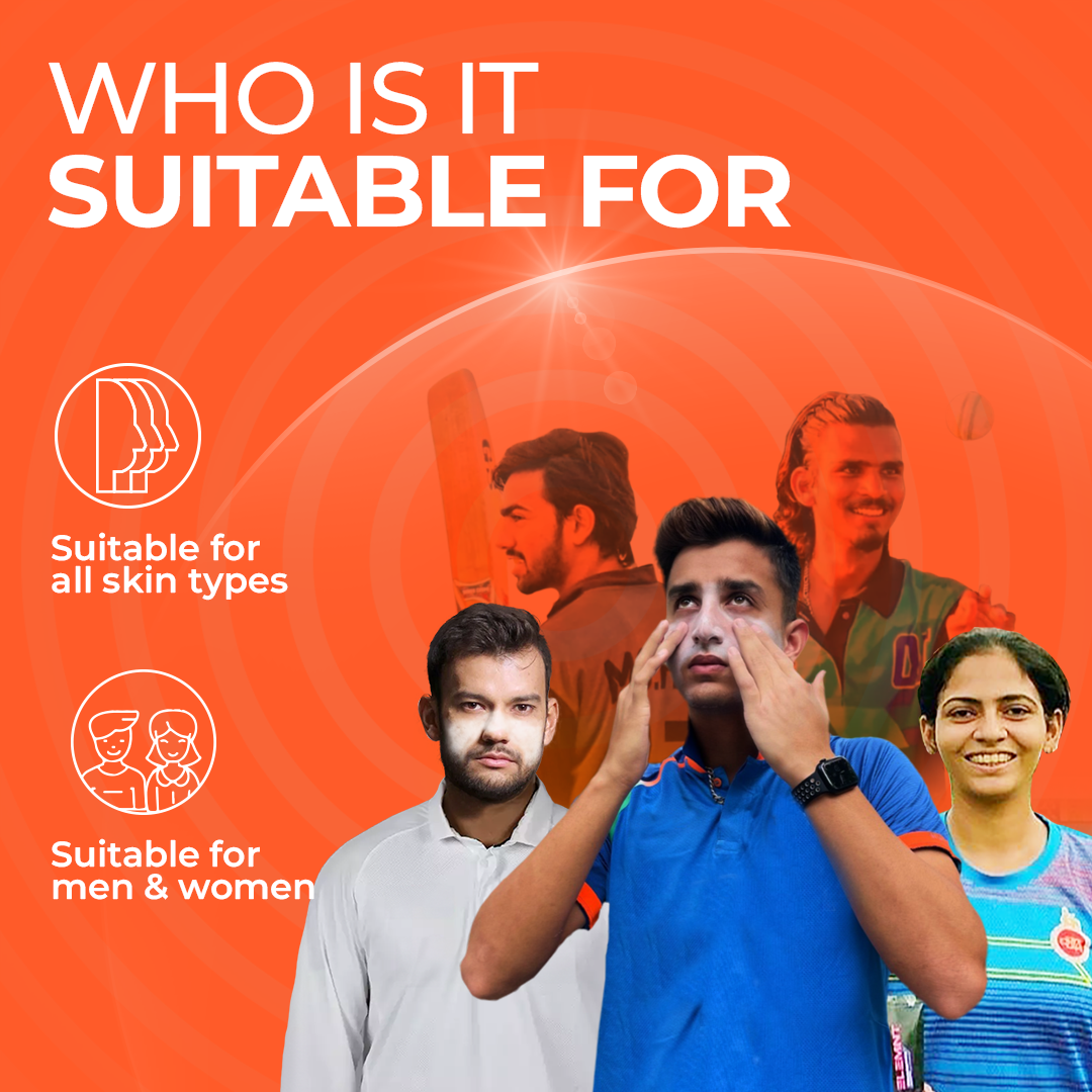 Cricketers,Runners, Cyclists and individuals who spend time outdoors should try to apply sunscreen 10 to 15 minutes before heading out and reapply 4-5 hours. The ideal sunscreens for athletes who sweat and need SPF 30 or higher, easy to apply, and water- and sweat-resistant.